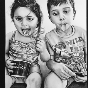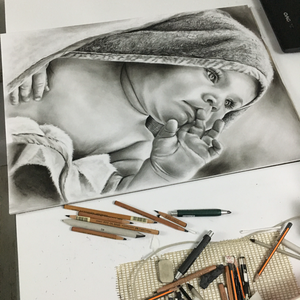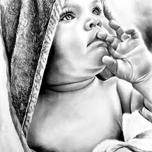Gezeichnet mit verschiedenen ölhaltigen Kohlestiften & Graphit, auf weißem, festem Papier.